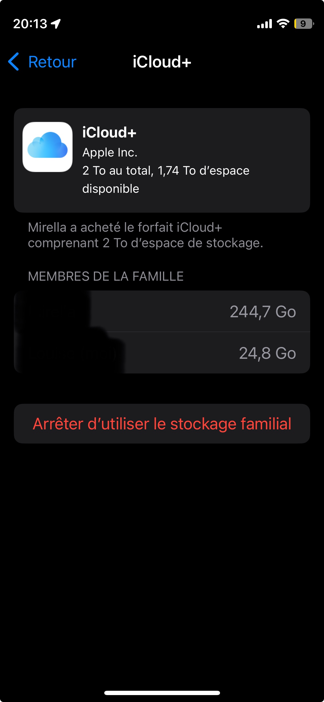 Bonjour je ne comprend pas pk je n’ai plus de stockage alors que j’ai un partage familial de stockage icloud et que si ce stockage la il reste encore bcp de place mais sur le mien pas alors que la personne a payer pour que j’aie accès au même stockag