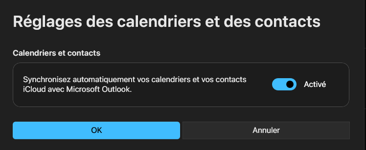 Désormais, je n'ai qu'un bouton pour activer ou non la synchronisation :