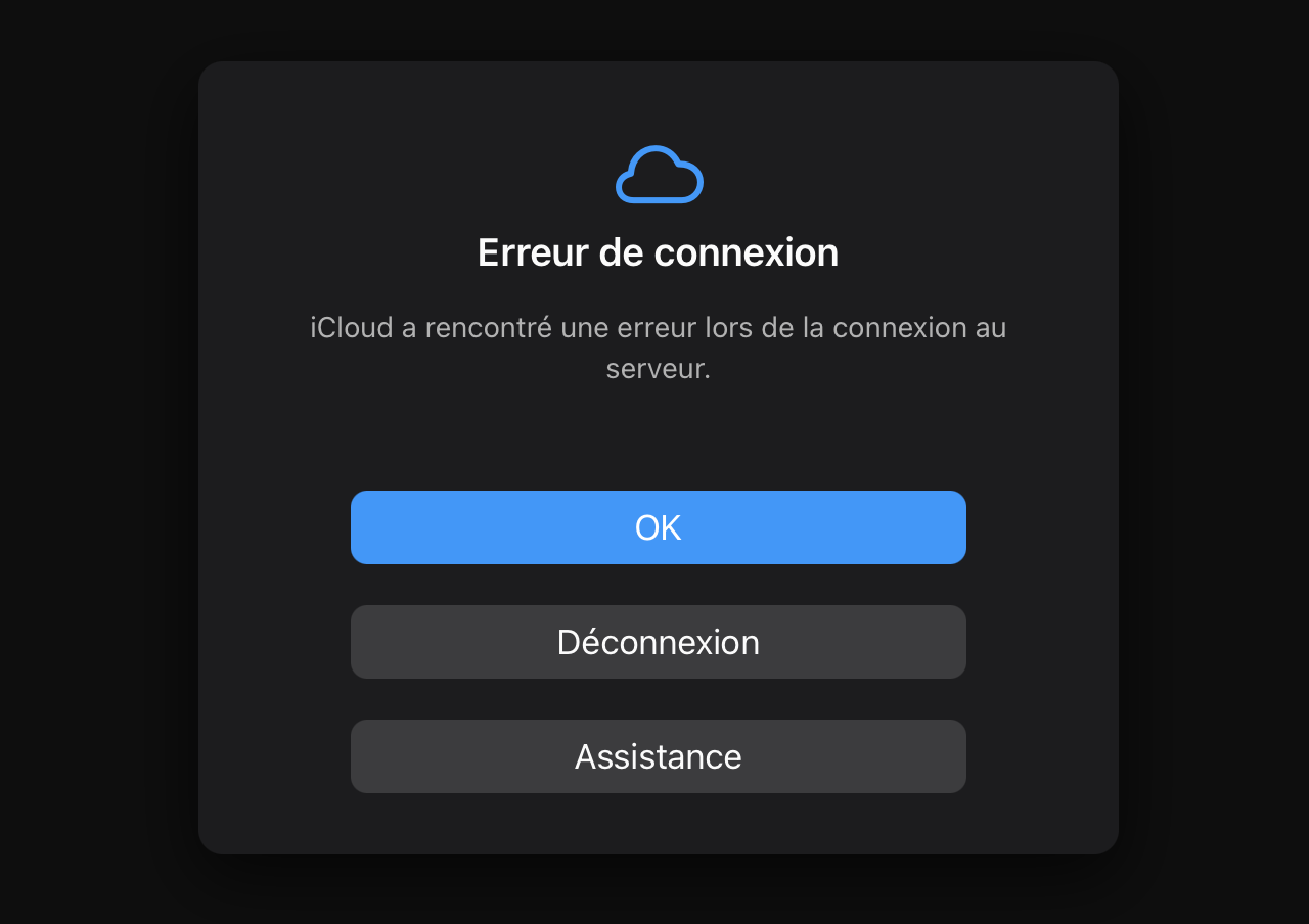 "iCloud a rencontré une erreur lors de la connexion au serveur". (Impossible d'accéder aux données iCloud sur le web)
