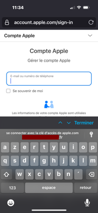 En effet, en touchant le champ d'adresse mail, l'ancienne adresse mail de mon compte Apple est proposé avec une clé d'identification et si je décide de l'utiliser, elle fonctionne... Et on arrive sur la page avec la bonne adresse mail !