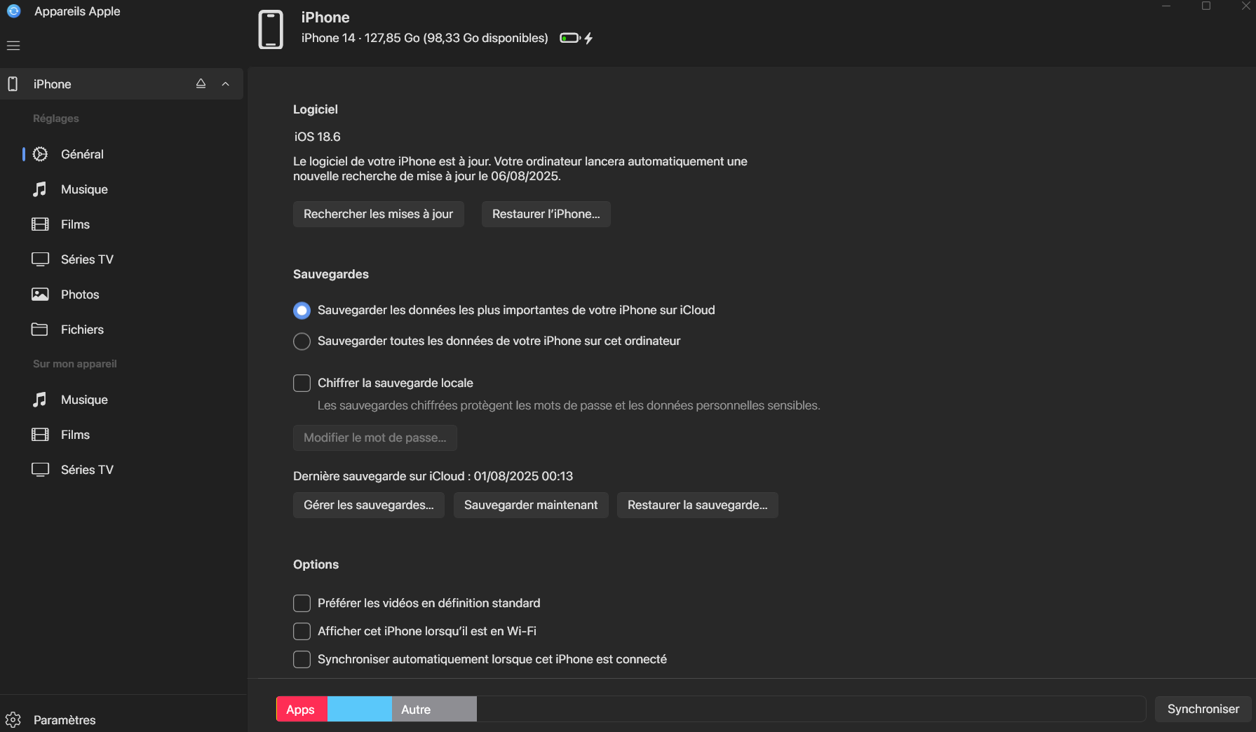 - Normalement s'y tout va bien il détectera ton iPhone est verra apparaitre cela :