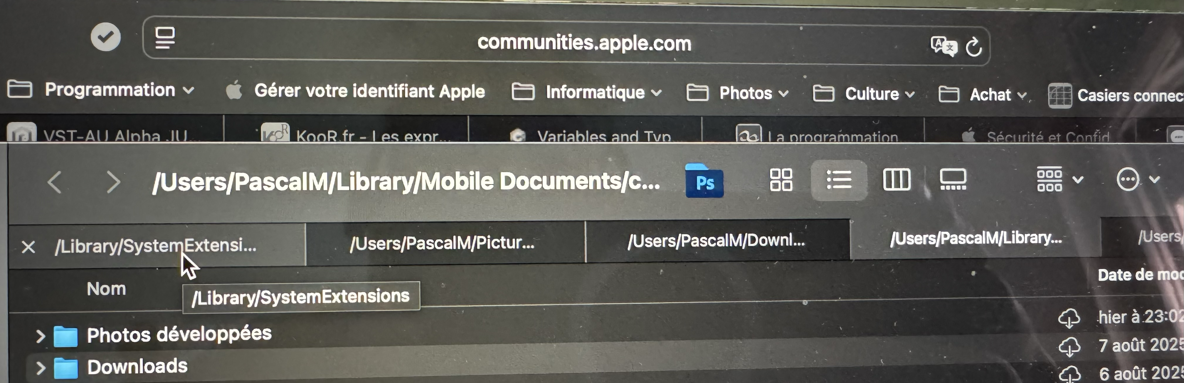 Bonjour, dans mon mac book pro (Sequoia), j'utilise le finder avec des onglets, c'est très pratique. Cependant, j'ai un pb sur une de mes machin,ies dont je n'arrive pas à venir à bout.