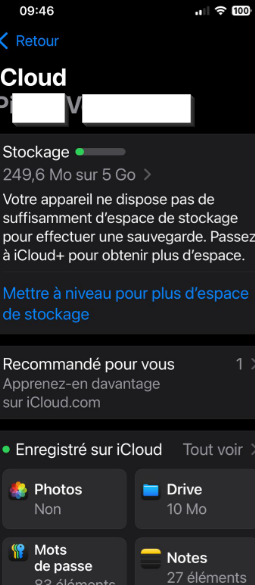 Stockage iCloud insuffisant suite changement iPhone