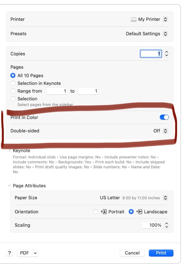 Réglages impression imprimante Canon Mac