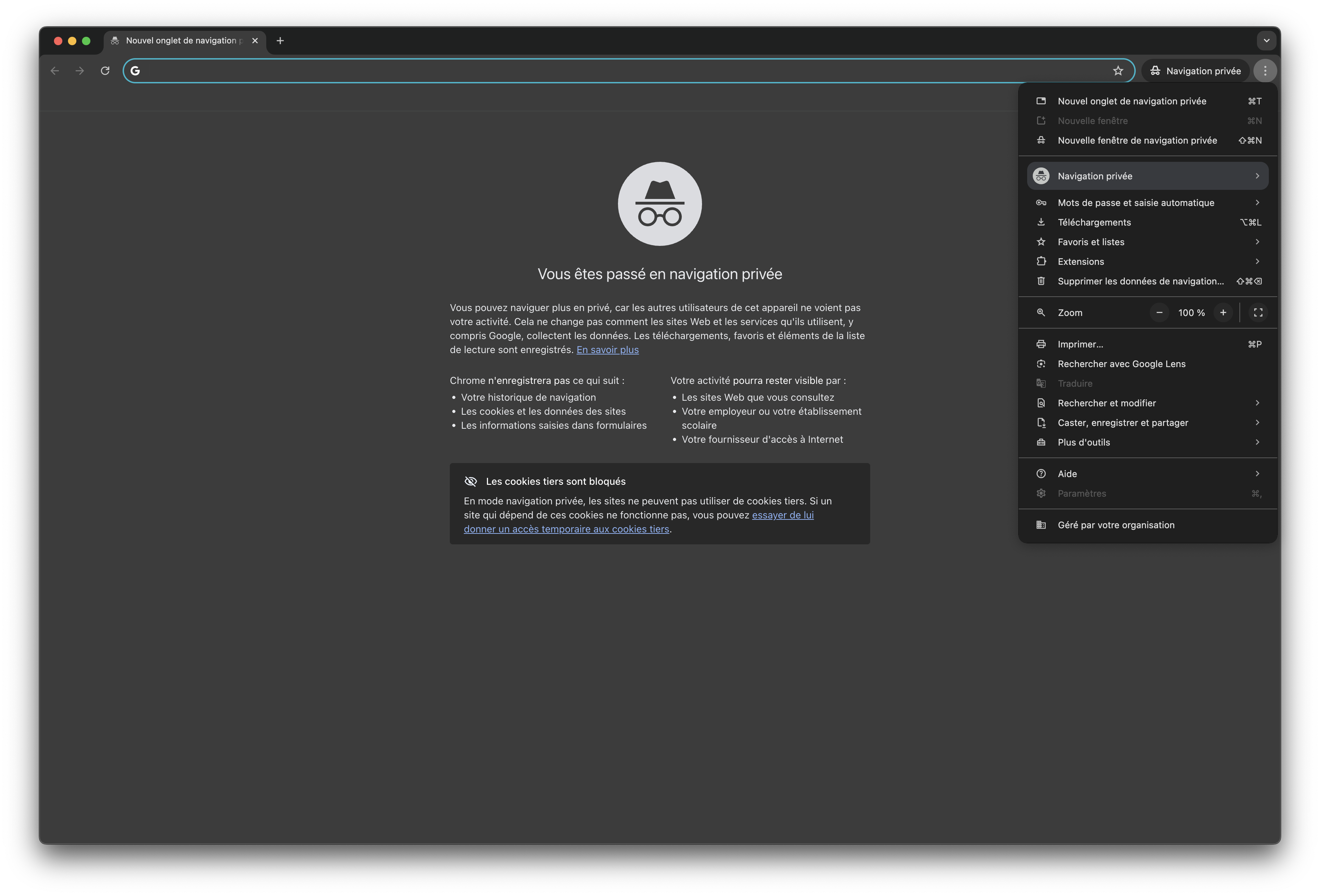 Supprimer navigation privée par défaut Chrome Mac
