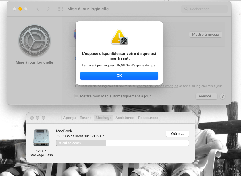 J'essai de mettre a jour mon Macbook air 13'' 2015 mais un message d'erreur disant que l'espace de mon disque dure est pas suffisant mais j'ai largement assez de place.