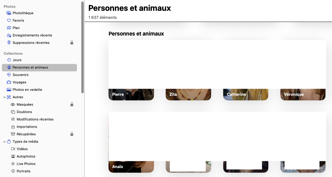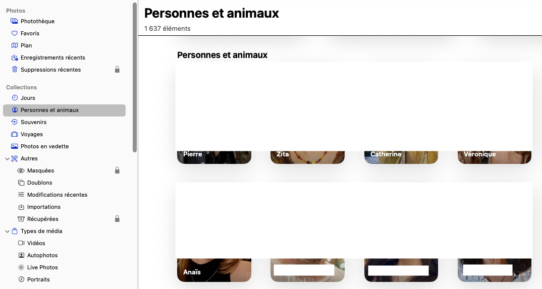Dans Photos sur mon iMac, j'ai identifié 1600 personnes dans "Personnes et animaux". Comment les regrouper en dossiers? Par exemple, un dossier famille, un dossier amis, un dossier collègues, etc