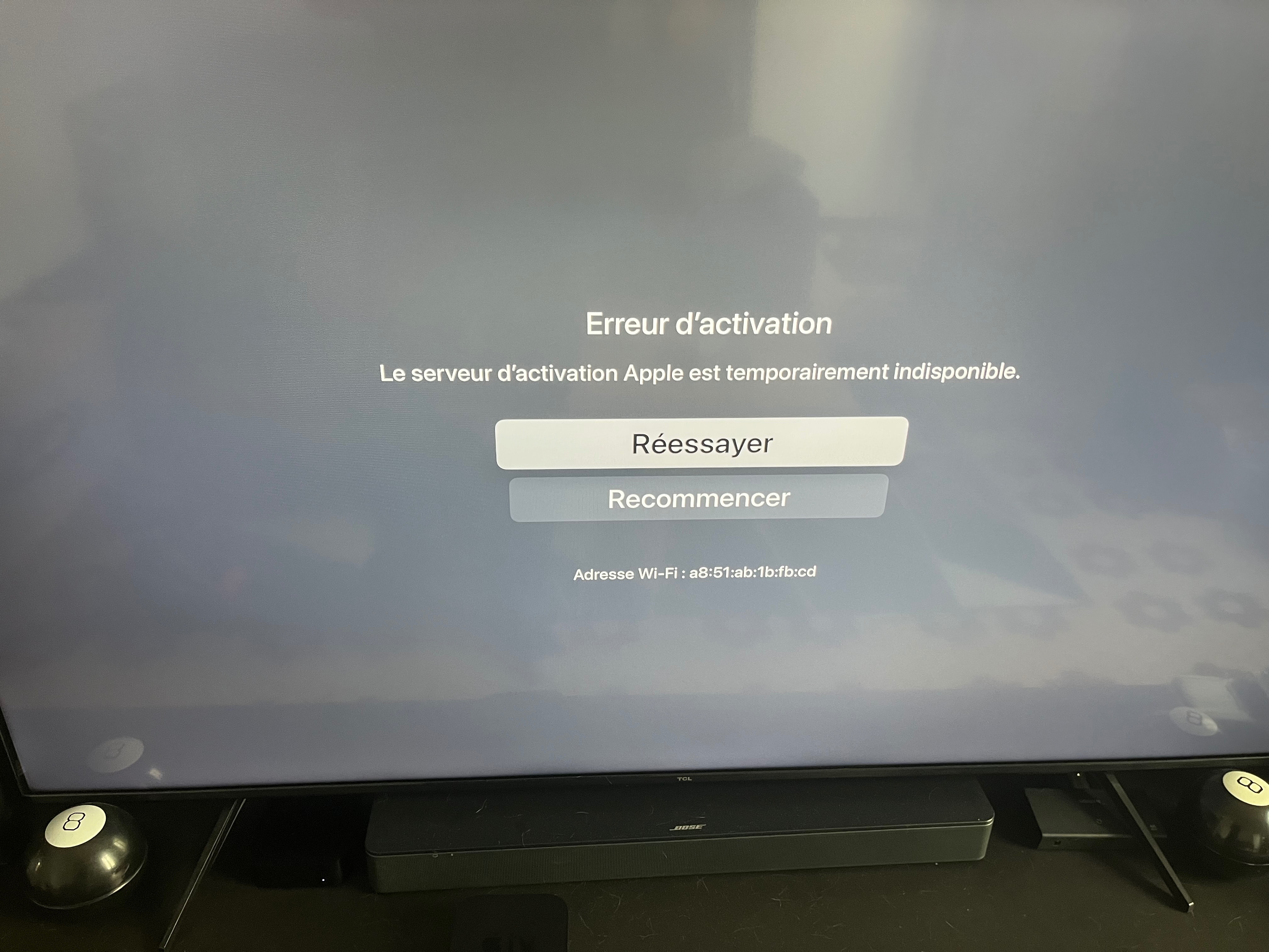 je viens d’acheter d’occasion (en état neuf avec blister présent) une apple tv 3eme gen (A2737) mais je rencontre un problème de serveur indisponible temporairement lors de l’activation.