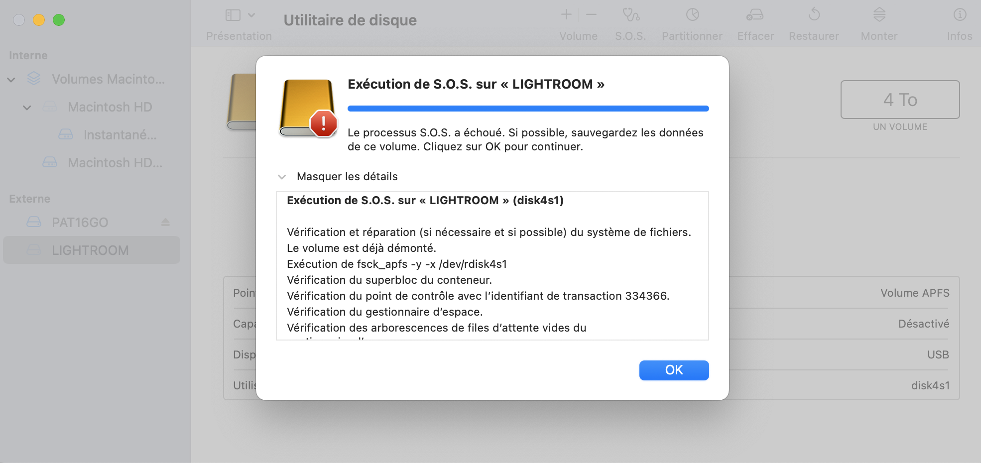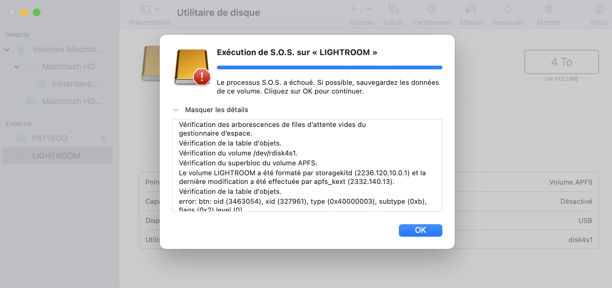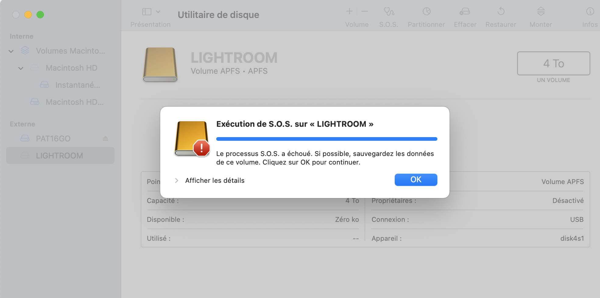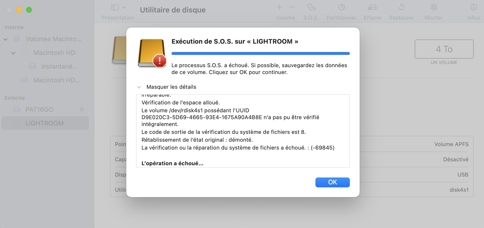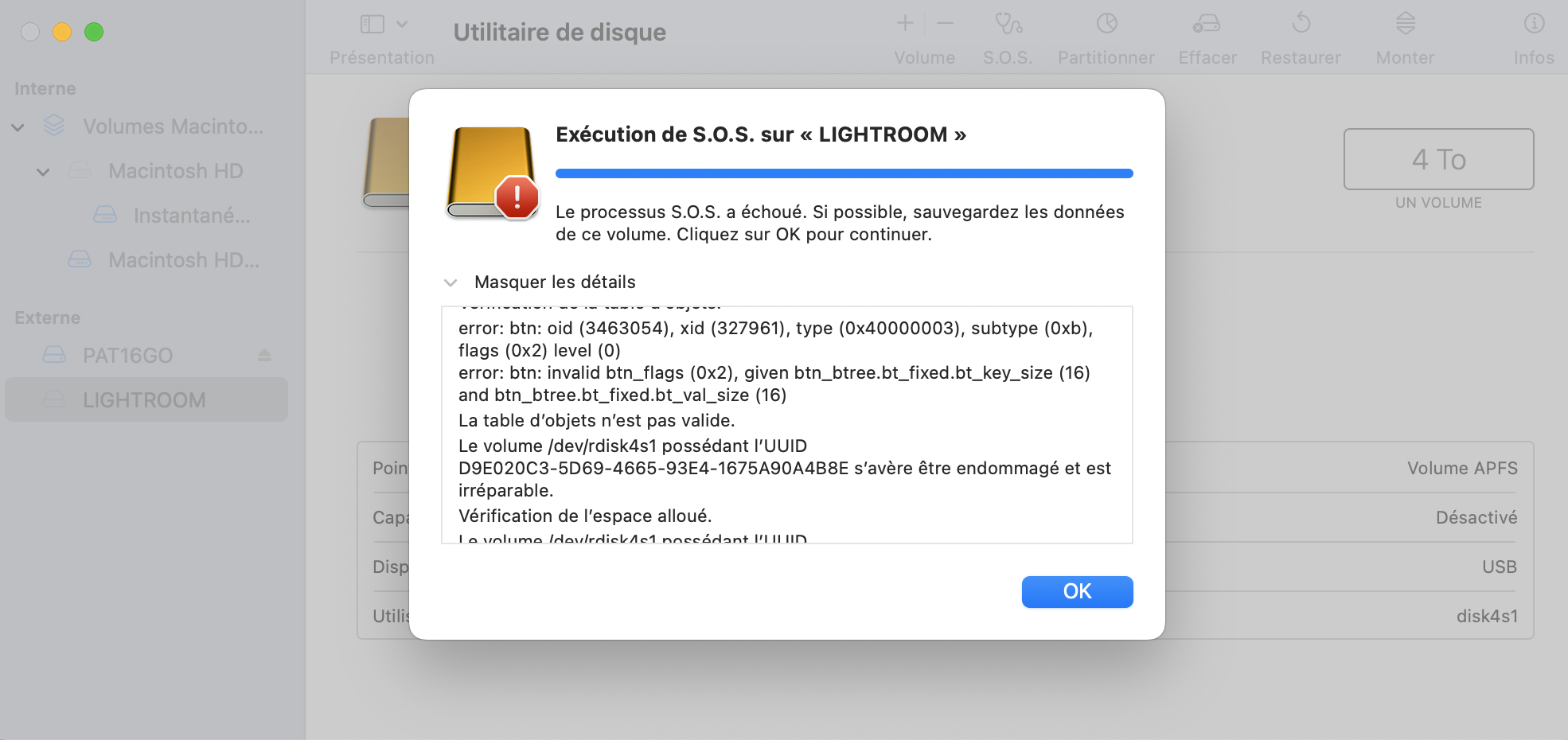 SOS Disque n'arrive pas à réparer. Peut être essayer SOS Disque mais en mode Récupération. (je n'y crois pas trop).