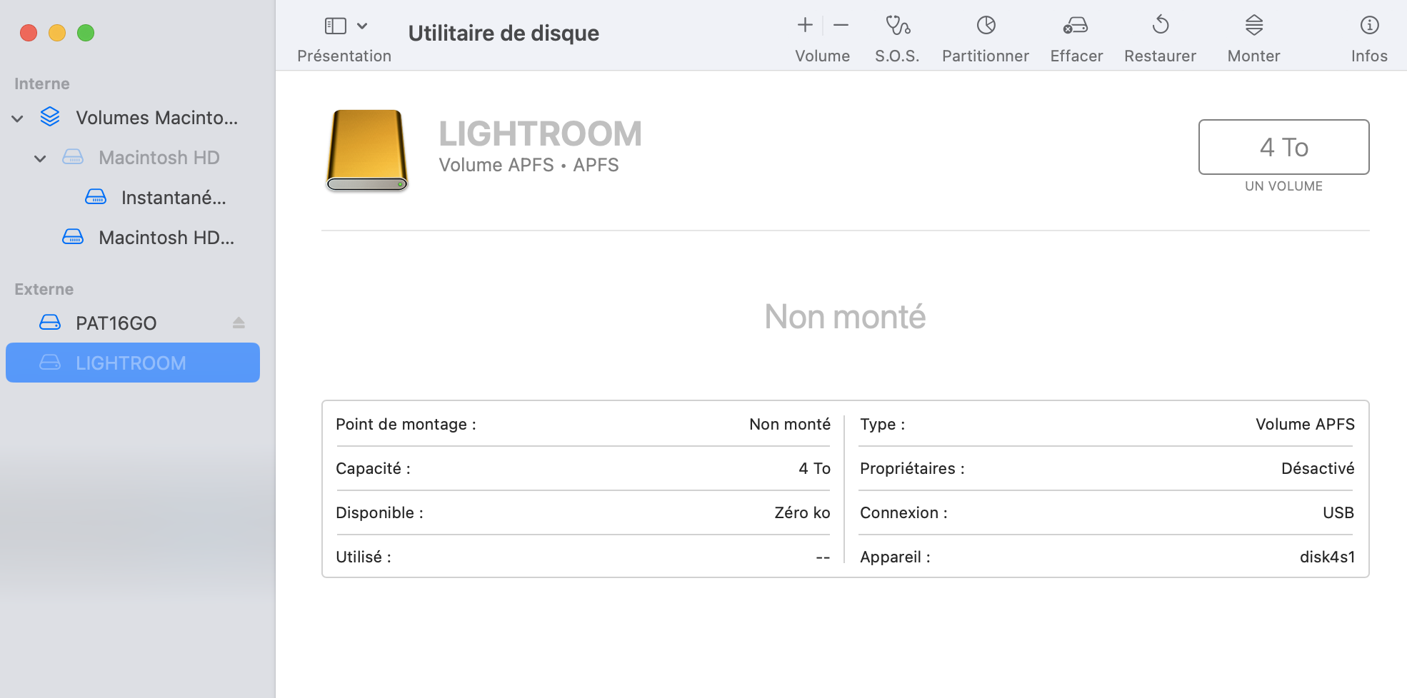 disk4s1 vient de ta copie d'écran en bas à droite dans la zone "Appareil"