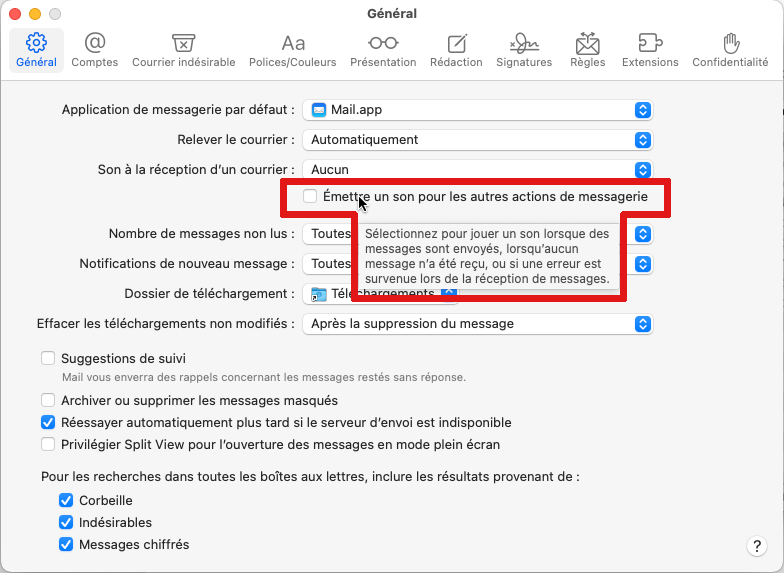 Pas de son envoi Mail Mac