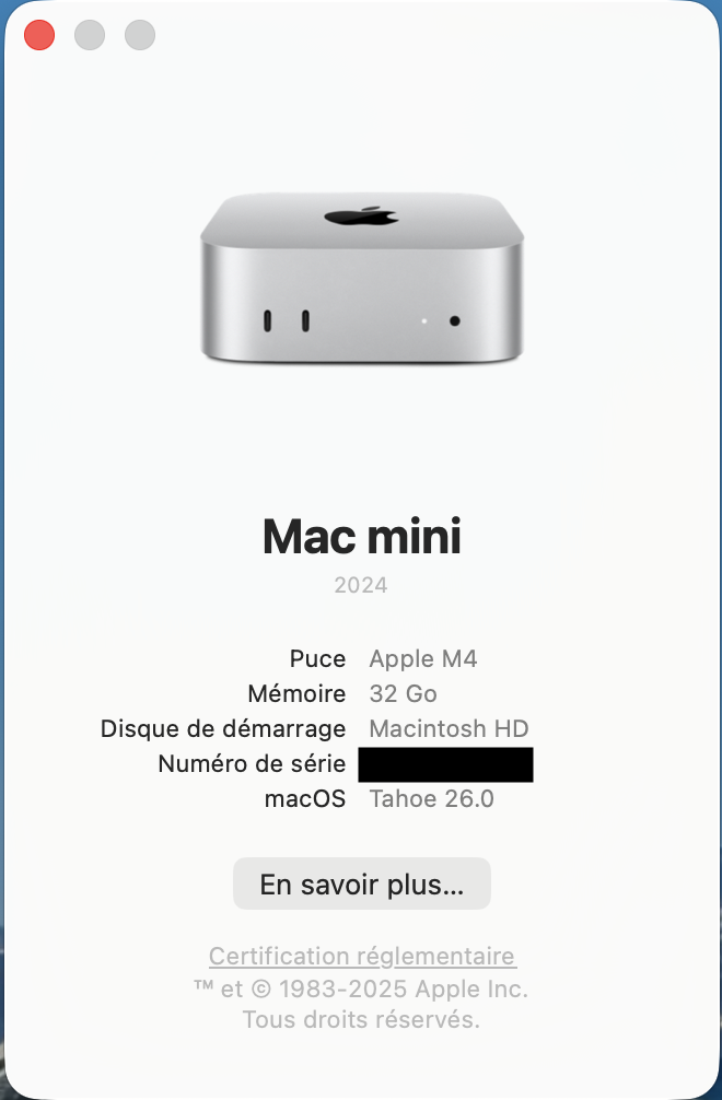 Ralentissement du Mac mini Apple M4 depuis l'installation de macOS Tahoe