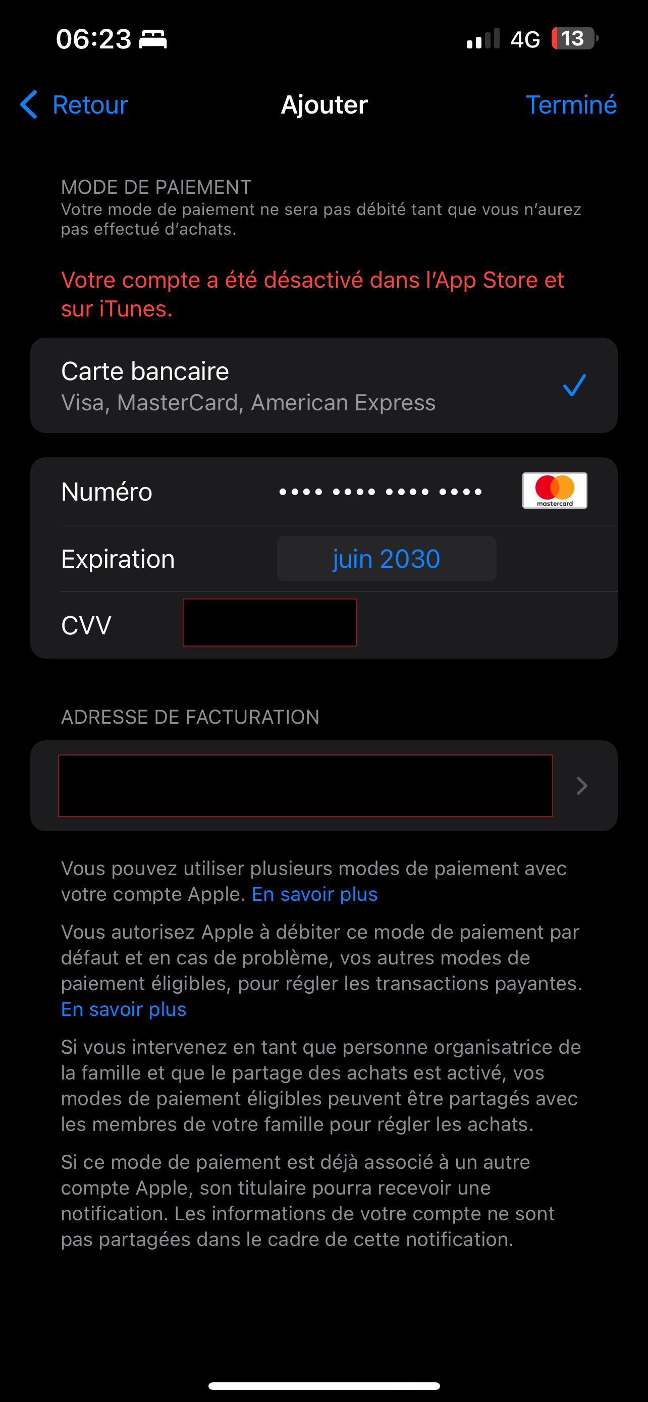 I have a problem with my bank cards. I can't use them or enter them on the apple store. You have stopped them for me.