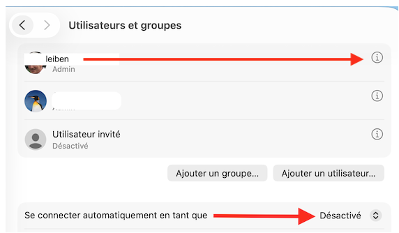 Pour ce faire, rendez-vous dans >Réglages système>Utilisateurs et groupes et désactivez "Se connecter automatiquement en tant que"