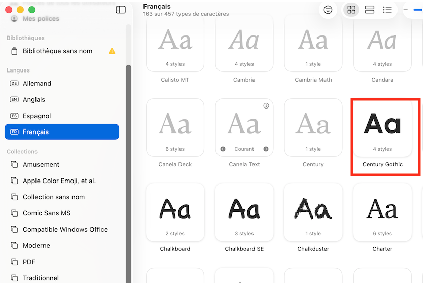 Cette police est bien présente dans la Livre des polices de macOS26. Elle est grisée et il est facile de l'activer avec un clic droit.