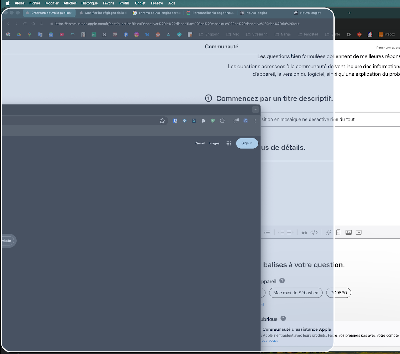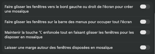 Désactiver disposition en mosaïque sur Mac
