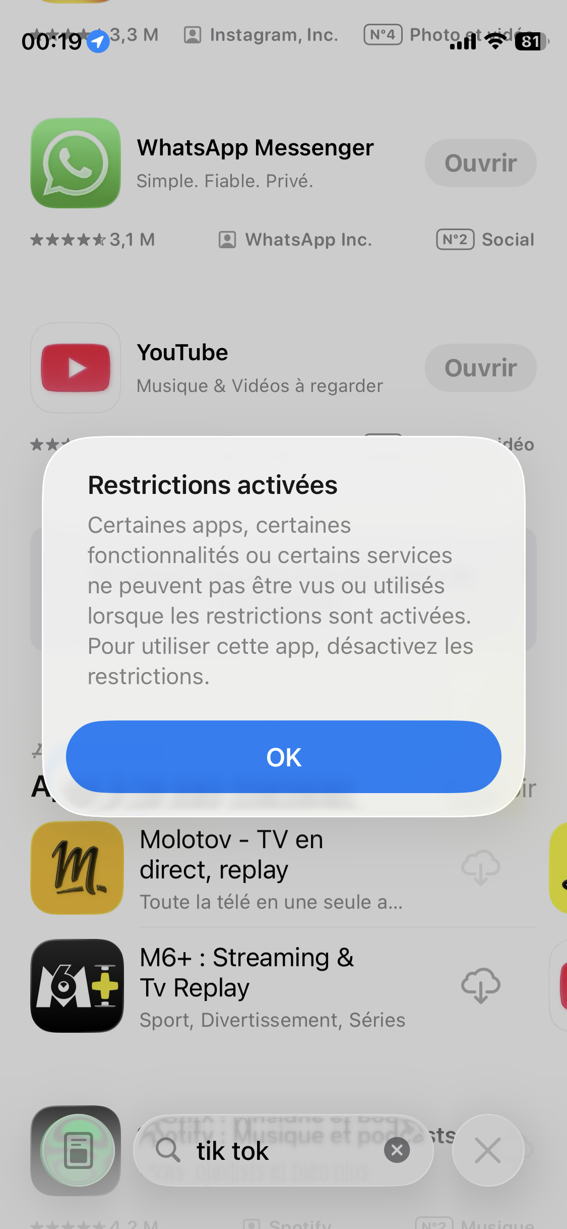 Impossible d’installer des app pour causes de restrictions