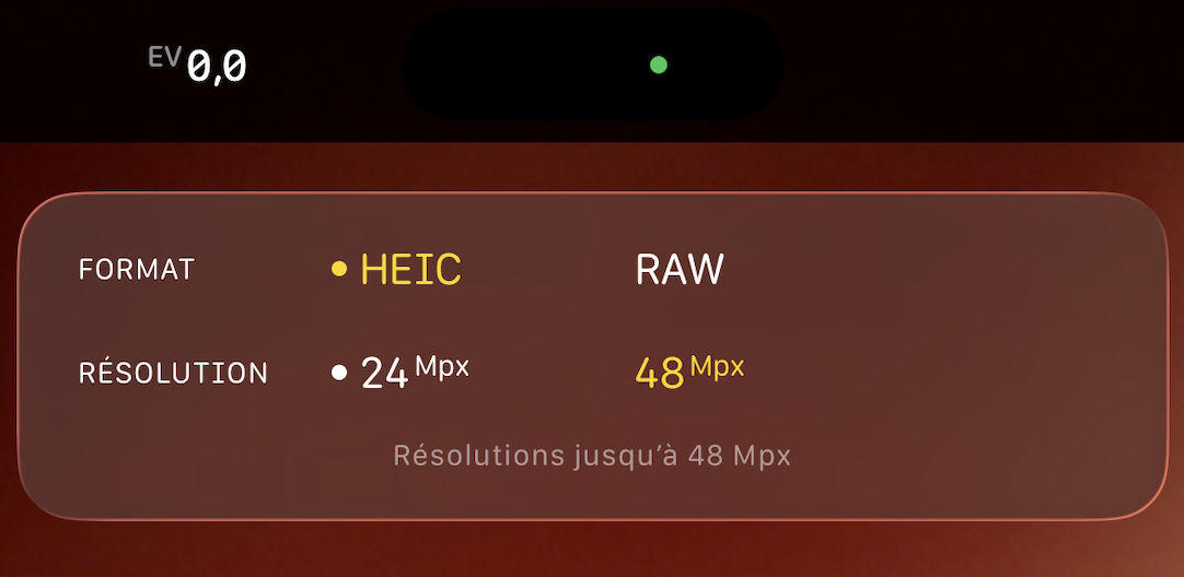 Pour sélectionné HEIC et 48
