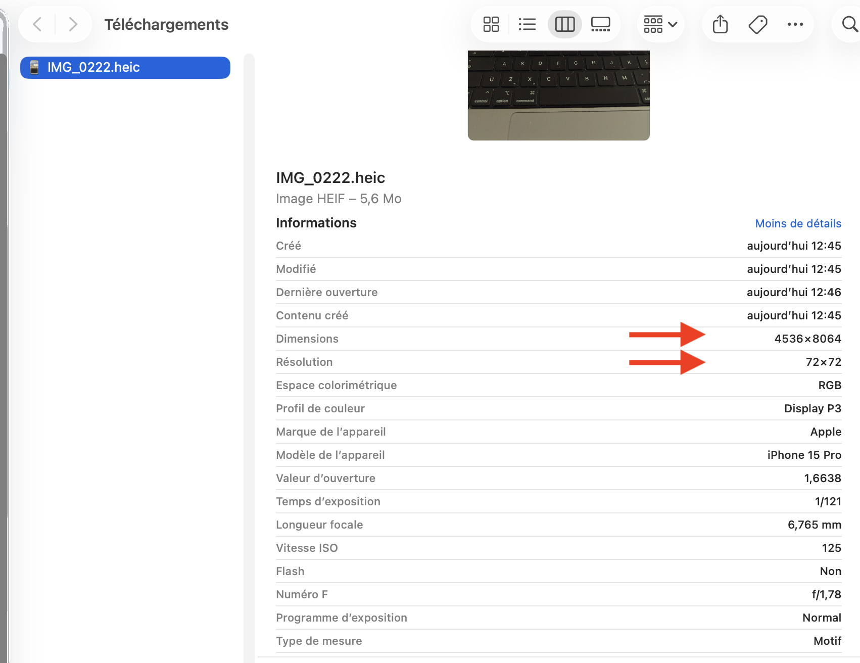A ma connaissance la résolution maximal d'une photo pour un iPhone 15 est de 4536 x 8064 pixels avec une résolution de 72 x 72 et cette résolution est généralement un standard