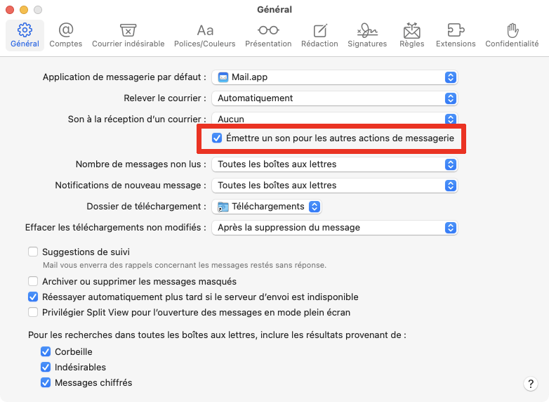 J'ai beau faire tous les réglages requis, je n'arrive pas à avoir du son pour les opérations de Mail?