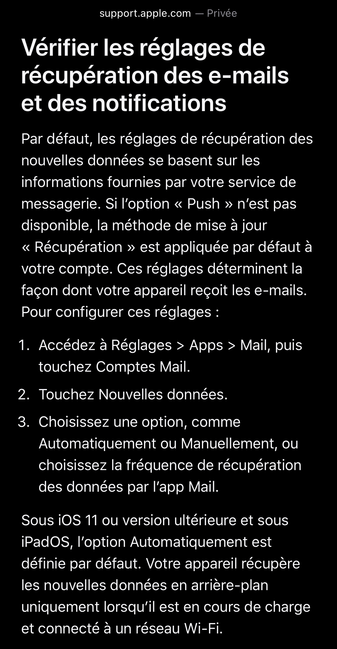 Je suis allé dans les réglages de notifications de l’application Mail (apple) et j’ai tout activé (bannières, sons, badges, etc.), mais rien n’y fait : aucune notification ne s’affiche.