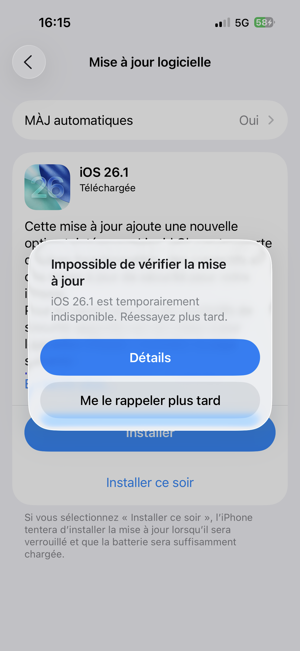 Bref , évitez de lancer des mises à jour majeures en connexion cellulaire . Et redémarrez votre appareil avant de lancer vos mises à jour à jour.
