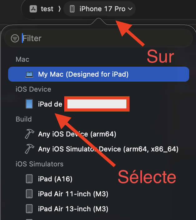 Mai selon moi. La meilleur solution serais de re-compiler vos code avec un Xcode à jour V26.1.1 (surtout vérifié si le téléchargement des Components approprié ont été faite ) sur macOS Tahoe V26.1 avec comme cible un iPhone 15 sur IOS 26.1 brancher en câbler sur le Mac et les configurations faite (ou vérifier) pour accepté cette application sur votre iPhone