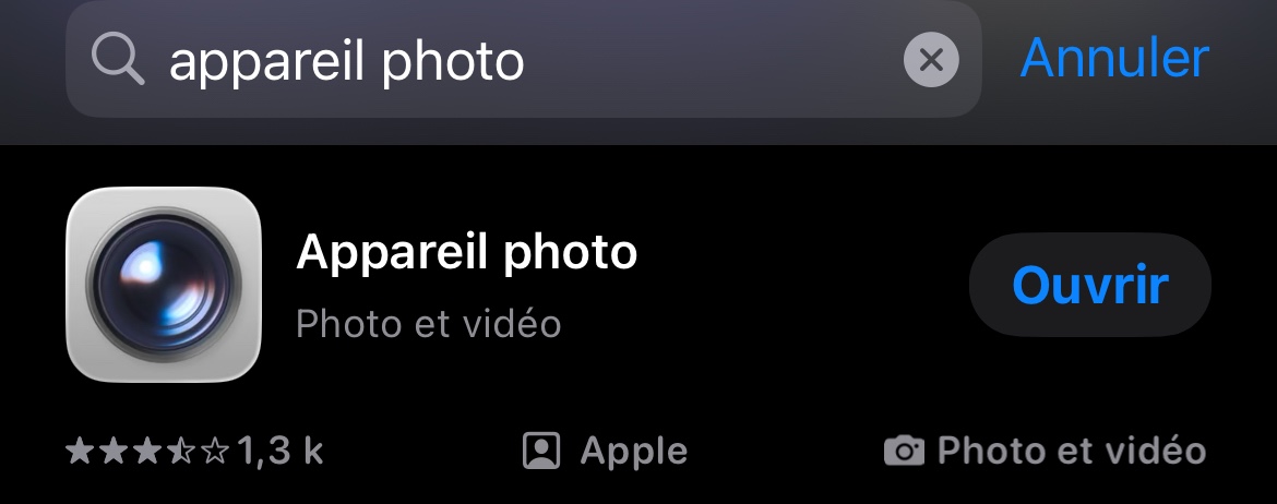 Mon iPhone a soudainement perdu l’application Appareil photo. Elle a disparu partout : écran d’accueil, recherche Spotlight, widgets… J’ai déjà vérifié :