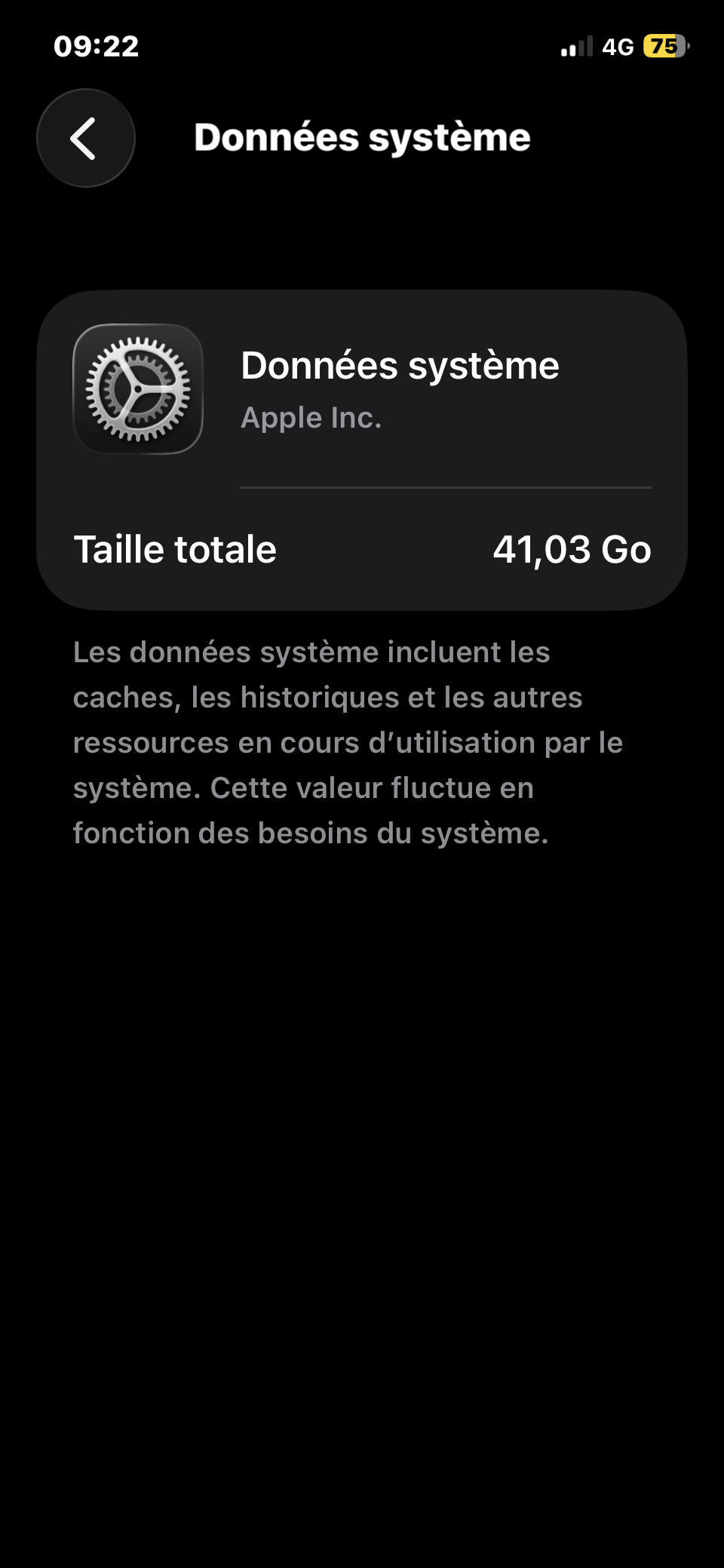 normalement les donnée système sont sensé occupé 5 à 15 go et non 40go et a cause de cela le stockage de mon iPhone est saturé ce qui rend mon téléphone difficilement utilisable.