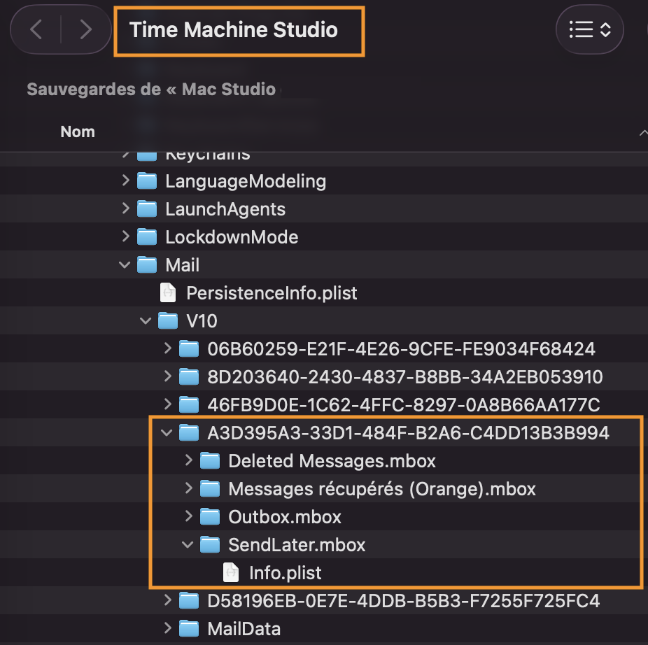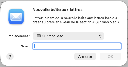 Chez moi non plus, "Sur mon Mac" n'existe pas, ou plutôt n'existe plus, et cela car je n'ai plus rien "en théorie" sur mon Mac, vu que j'ai placé tous mes dossiers Mail sur iCloud, ou les autres serveurs imap. De cette façon, ces dossiers sont accessibles depuis tous mes appareils.