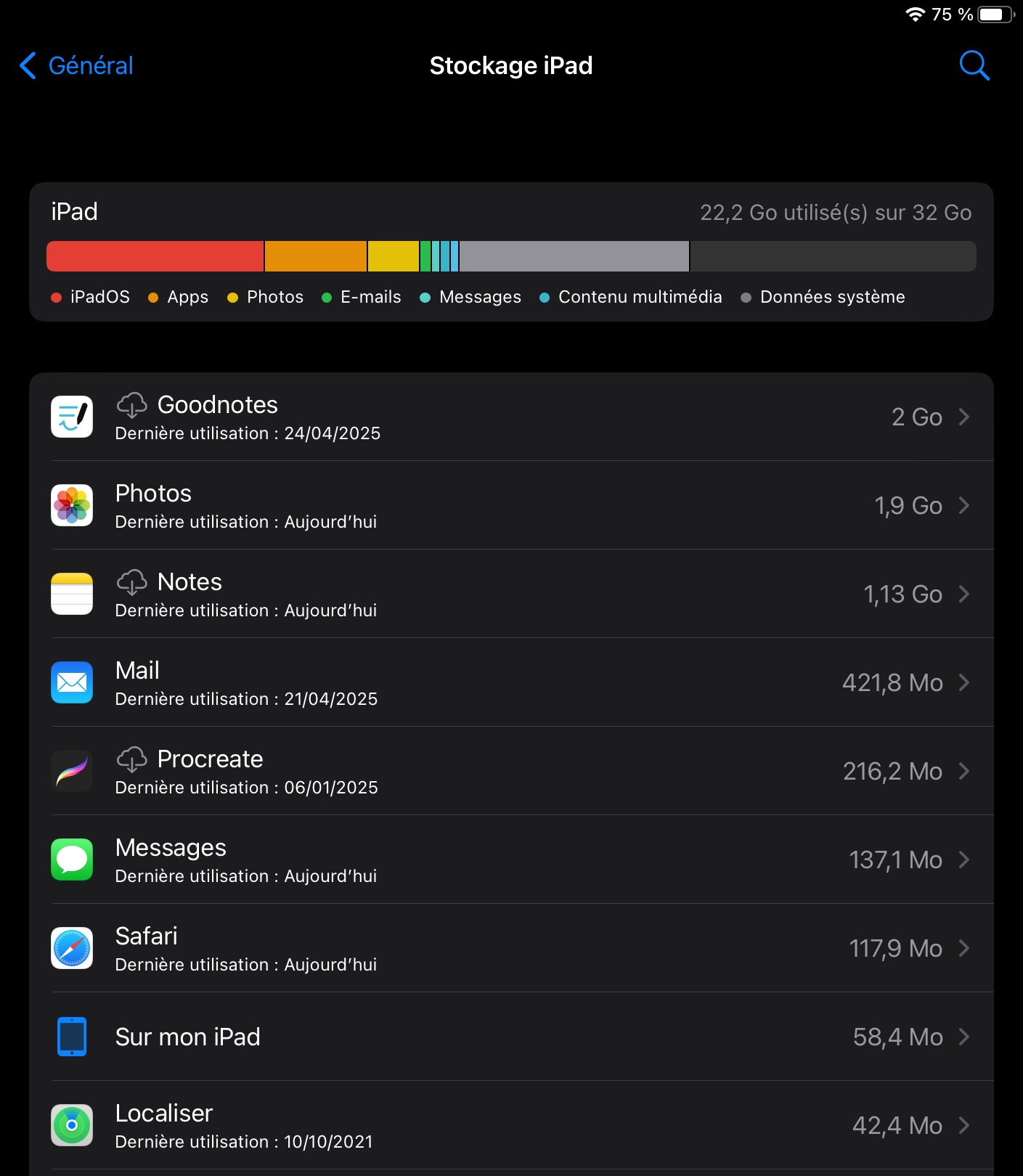 Je n’arrive pas a faire la mise a jour de mon ipad car espace insuffisant alors que j'ai l'espace suffisant