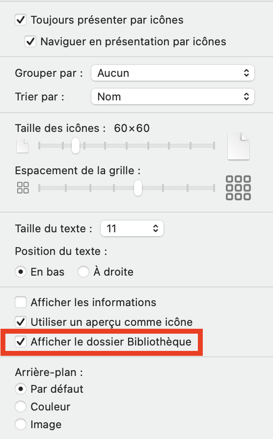 2/ Ta maison: sélectionne "Présentation" sur le "Finder" "Afficher les options de présentation"
