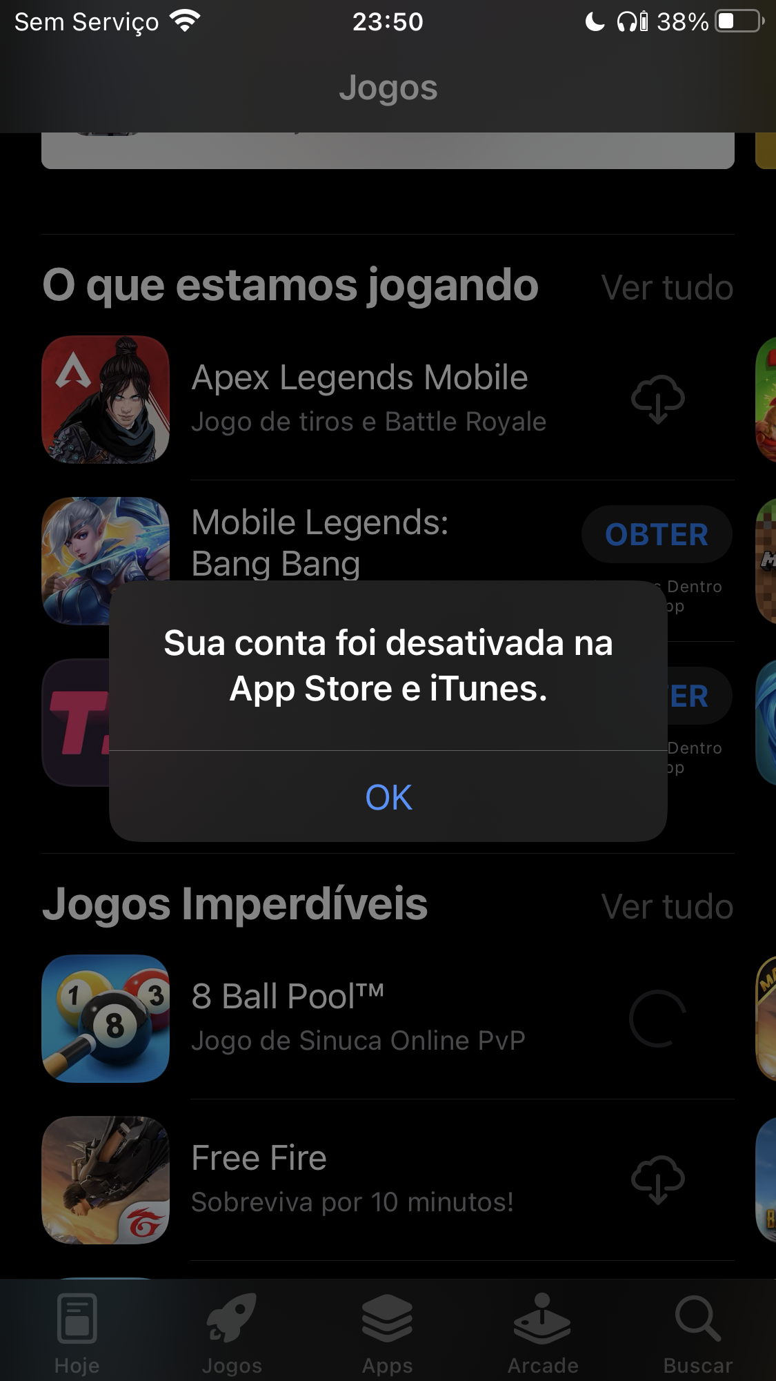 Se você receber a mensagem "Sua conta foi desativada na App Store e iTunes"