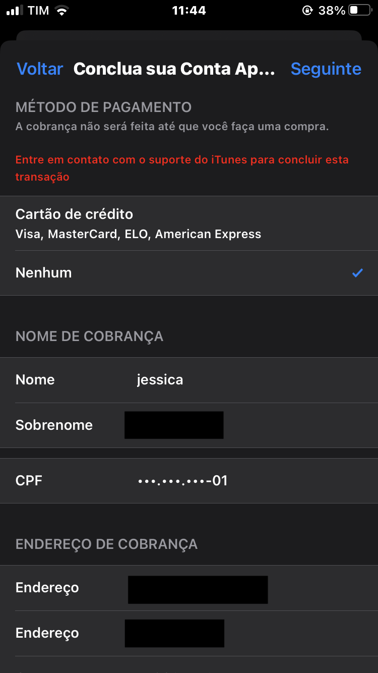 Problema em sua conta, Fale com Suporte da  pelo telefone 0800-761-0880 ( Segunda a sábado das 08 as 20 )Ou Suporte da Apple