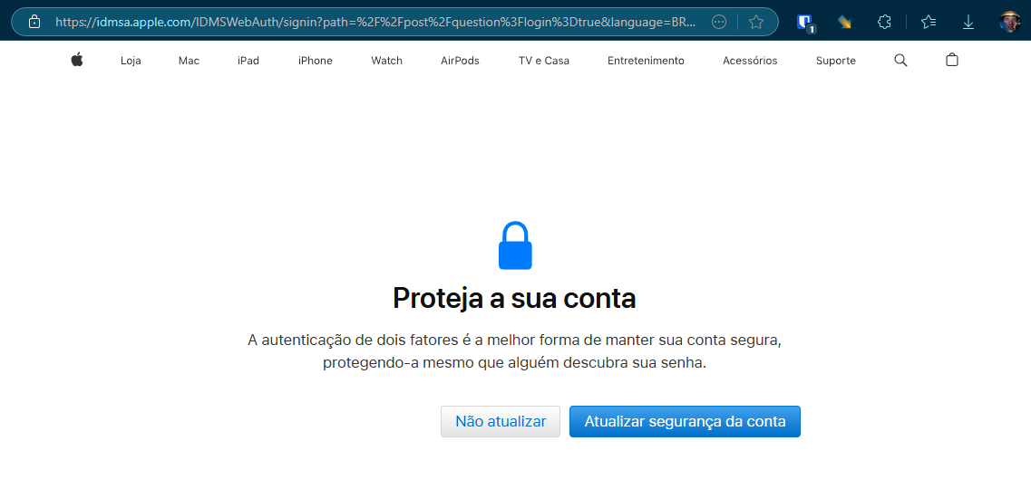 Atualmente, não possuo nenhum dispositivo da Apple. Meu filho utiliza um iPhone, e fazia anos que eu não precisava acessar minha conta Apple. Recentemente, configurei o iPhone dele como parte de uma conta familiar, na qual sou o responsável. No entanto, ao tentar atualizar minhas informações pelo acesso à conta via web, fui surpreendido com a exigência de ativar o segundo fator de autenticação. Para isso, foi solicitado que eu respondesse às perguntas de segurança, mas não me recordo mais das respostas.