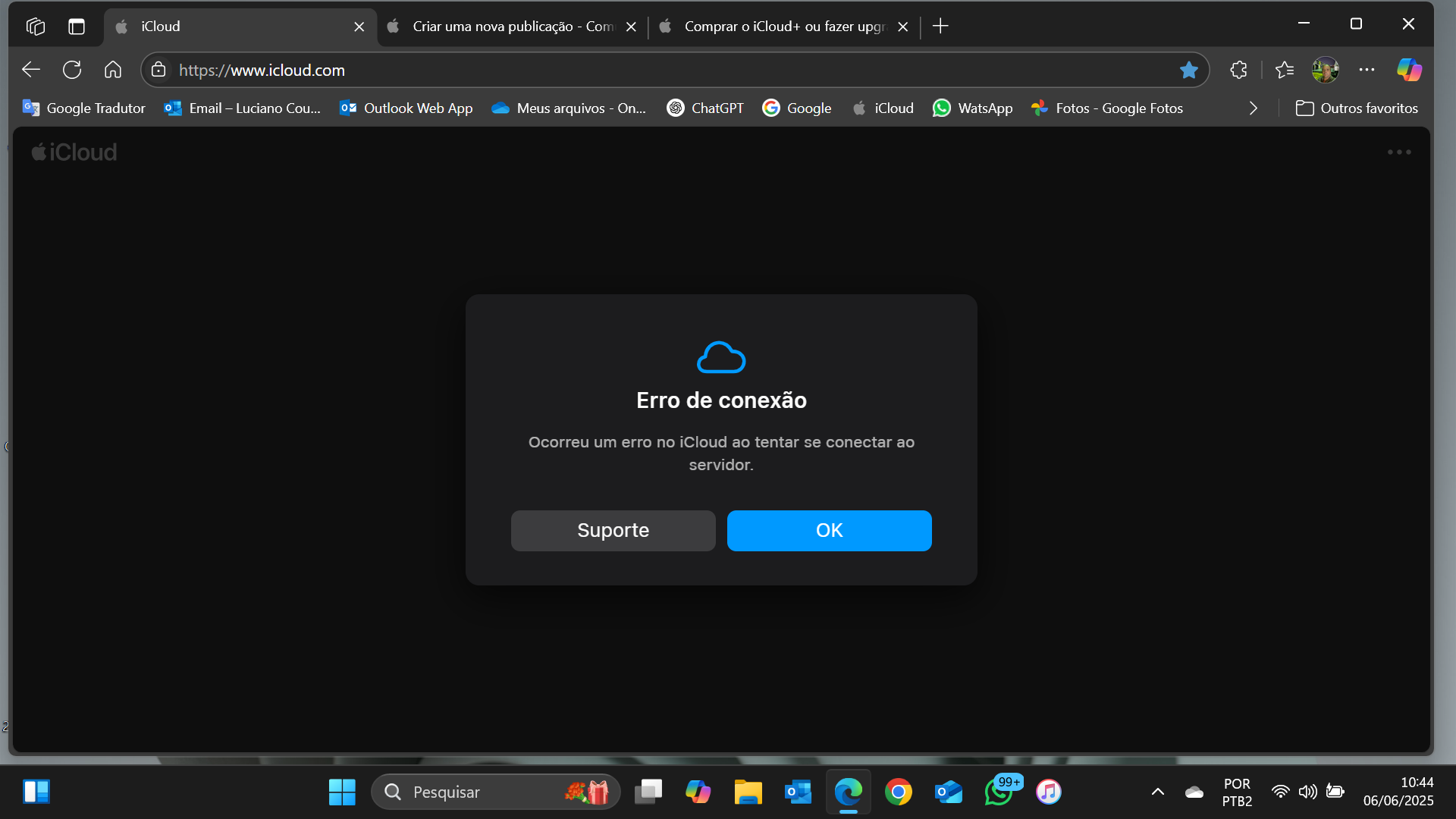 Título Original: Não consigo acessar o iCloud no meu pc com windows, a pagina esta apresentando falha ao carregar
