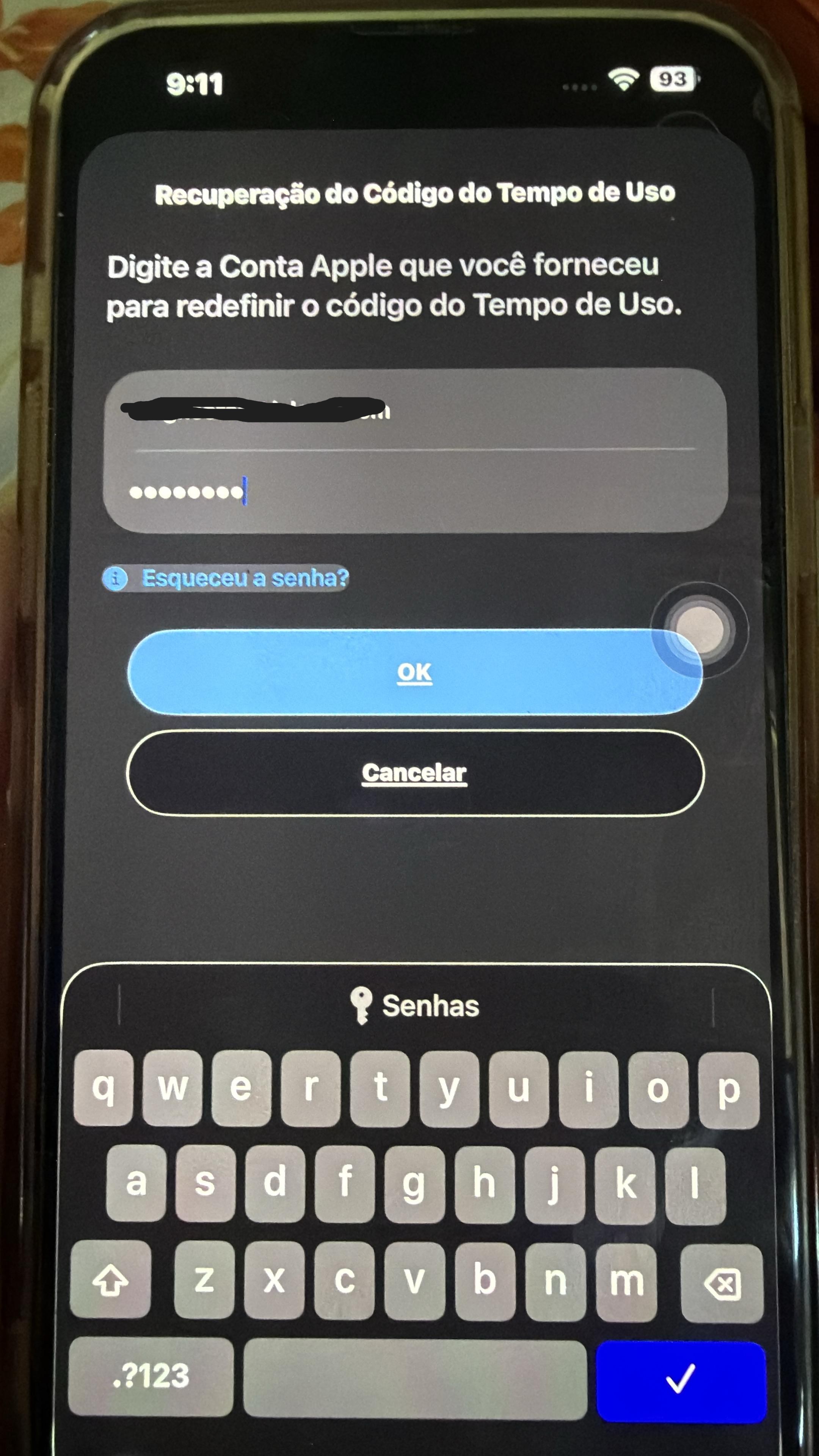 Bom dia, estou tentando redefinir a senha do codigo de tempo de uso, quando clico em esqueci a senha e coloco o IDApple ele nao redefine a senha, pelo contrario ele nao redefine e conta como uma tentativa de senha, possibilitando uma proxima tentativa apos 60 minutos, segui esse passo a passo da apple: https://www.youtube.com/watch?v=M1Pg2N3odgk