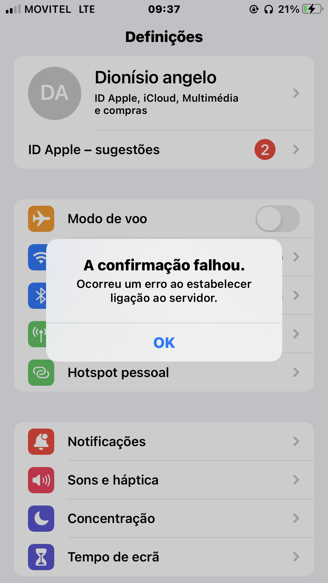 Poxa, que chato isso! Esse erro de confirmação geralmente é problema de conexão ou algo travado no servidor da Apple. Tenta reiniciar o iPhone e conectar numa rede Wi-Fi estável. Se continuar, dá uma olhada se os servidores da Apple estão ok (às vezes eles ficam fora do ar rapidinho). Também pode ajudar sair do iCloud pelo computador em appleid.apple.com e depois tentar de novo no iPhone.