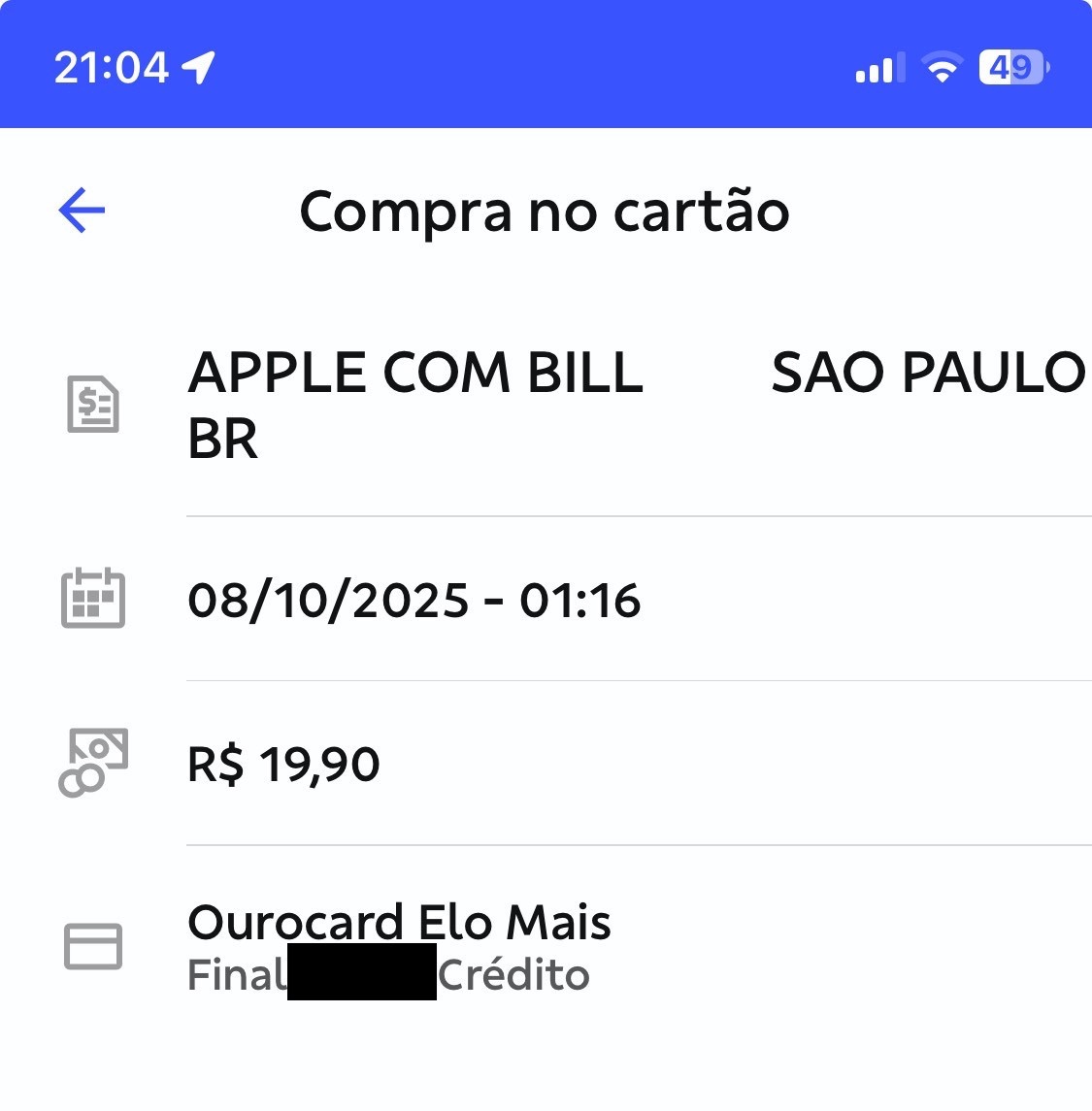 Apple.com/bill aparece na sua fatura quando você compra app, música, filme ou outro conteúdo da Apple. Aparece também quando uma assinatura é renovada e quando um membro da família compra apps ou conteúdo da Apple.
