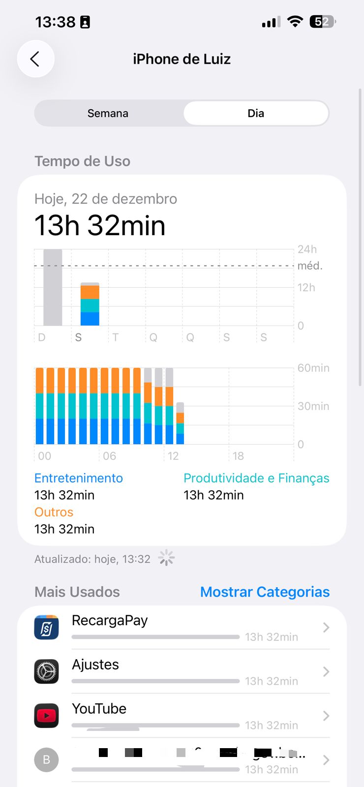 desde alguns dias atrás estou percebendo que os aplicativos que aparecem no tempo uso estão com os horários errados, marcando uso de até 24 horas, porém alguns que aparecem por lá, nem estão instalados no celular mais.