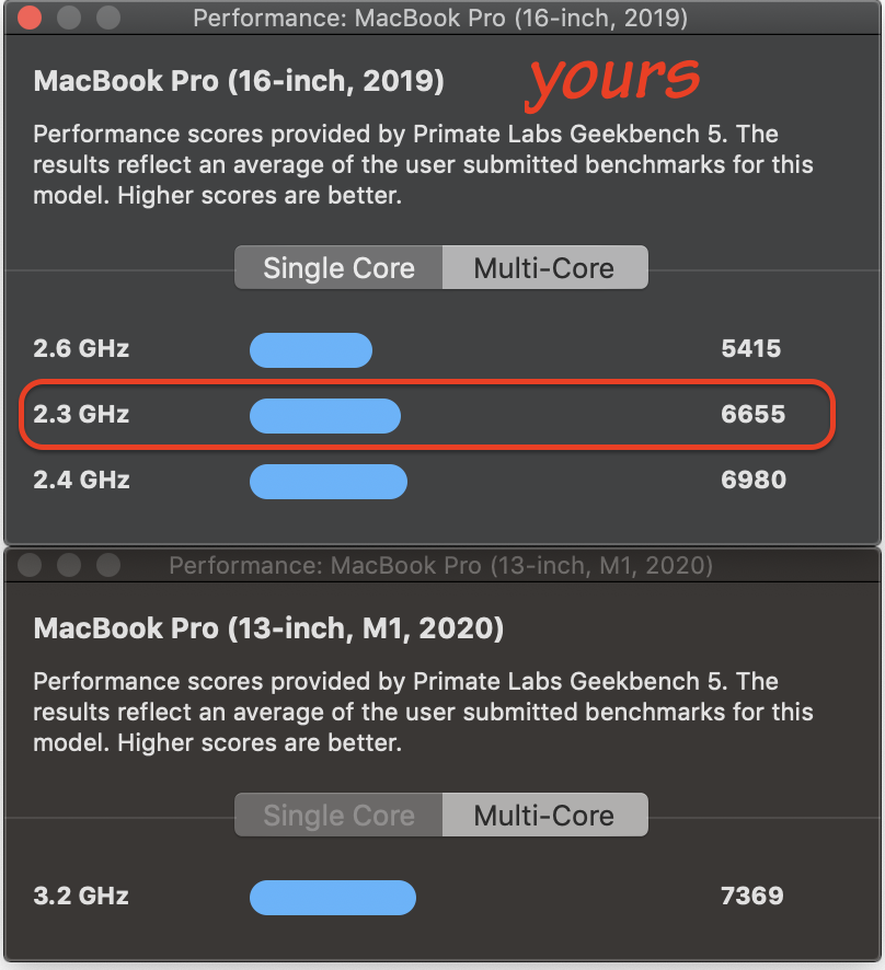 How about some data? I love data. These are benchmark data from the MacTracker database, available free in the Mac App Store: