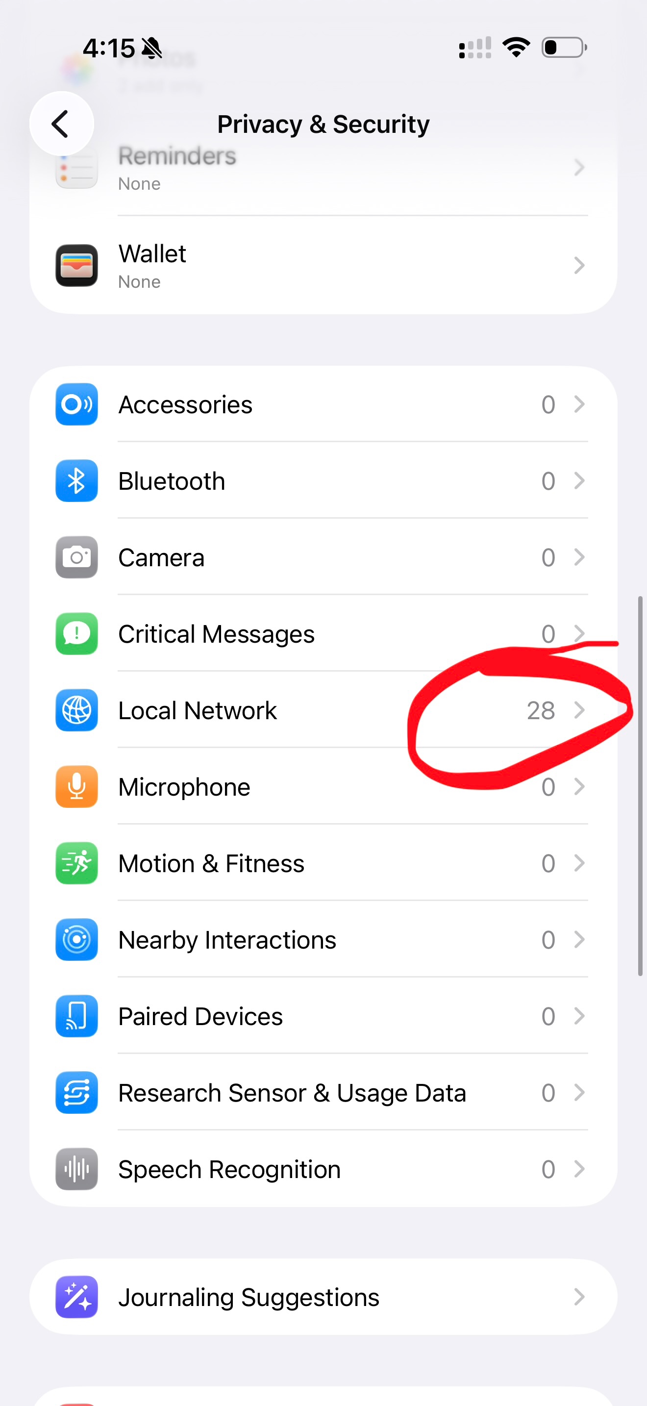 When i enter “Privacy & Security “ on my iPhone, and scroll down to “ Local Network “ I see the numbers 49, which basically means that 49 Apps have access to this information. but when i tap to see what, and who has access, I see the following: Apps that have requested permission to find and communicate with devices on your local network will appear here.” But nothing is shown. As in the 49 Apps is not shown.