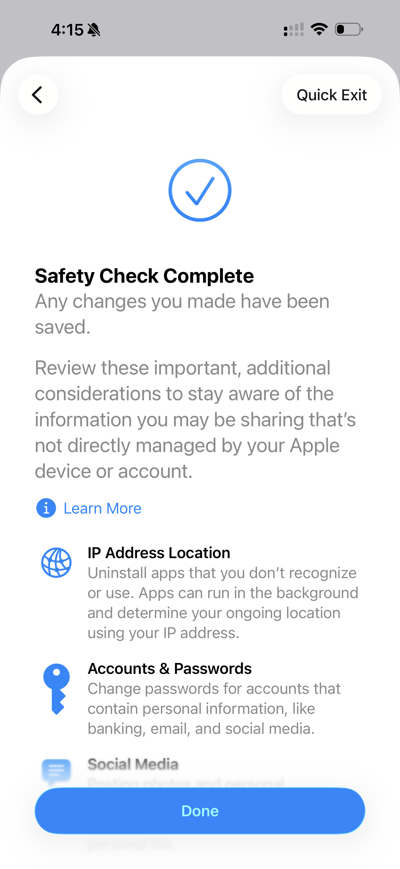 When I perform a Safety Check emergency reset to remove access to all apps, ironically it now gives 28 apps access, and it does NOT enumerate them nor give you the option to toggle on and off. The temporary fix I found is to just perform a network reset and it goes to zero, but there’s no way to validate what those hidden apps that have access are, and they reappear with access every time I perform the Safety Check emergency reset, so the network settings reset is not a thorough fix.